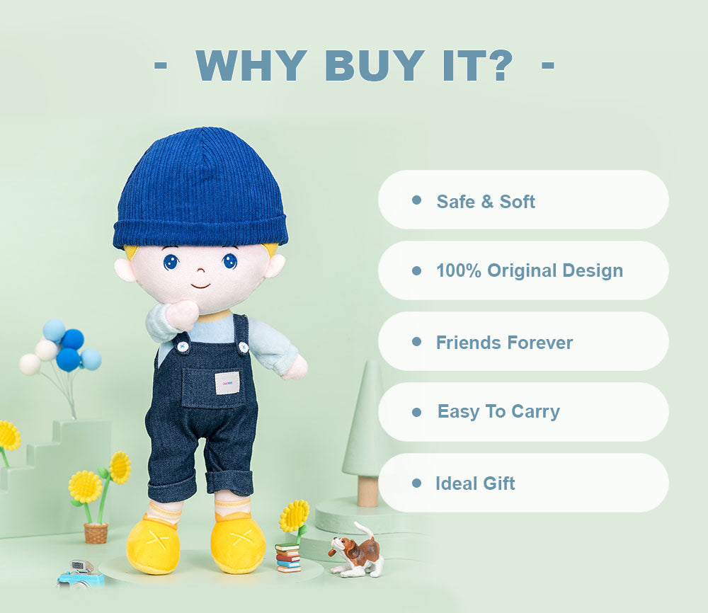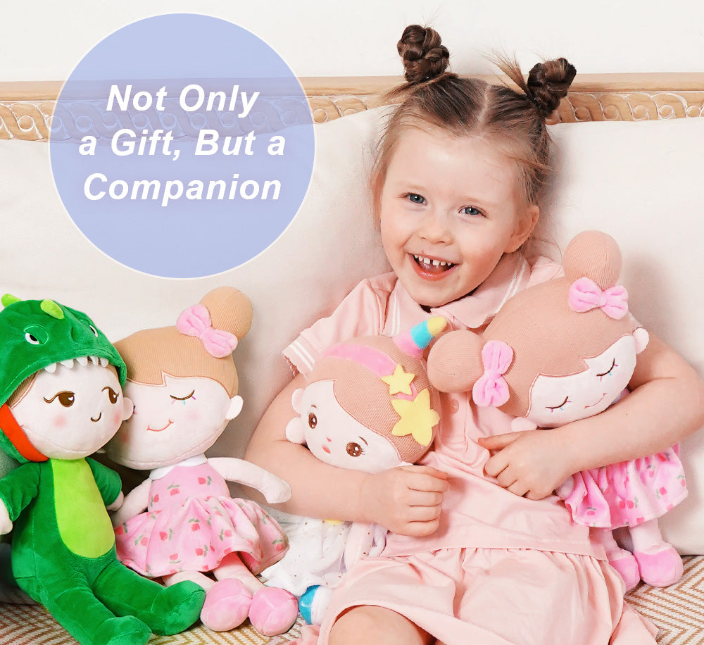 Our dolls are made of high-quality A-grade fabrics, which are super soft, safe, non-toxic, sensitive-skin-friendly, machine washable.