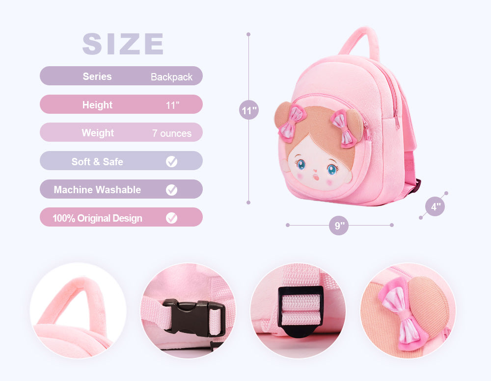 Safe and soft fabric, with our doll's signature features, this flush backpack is cute and peaceful. Your little one can’t help embracing it happily and love it definitely when met it.
